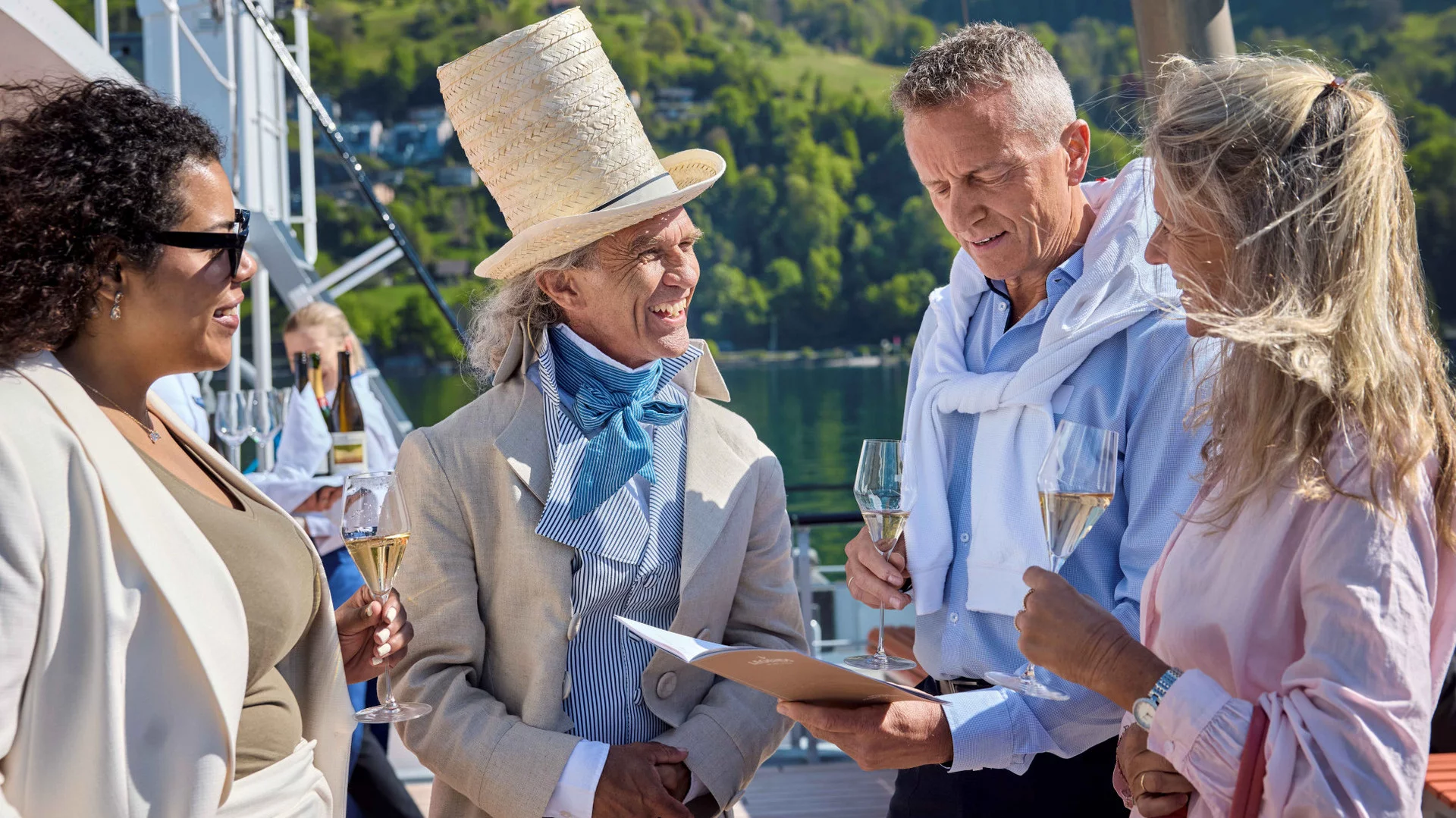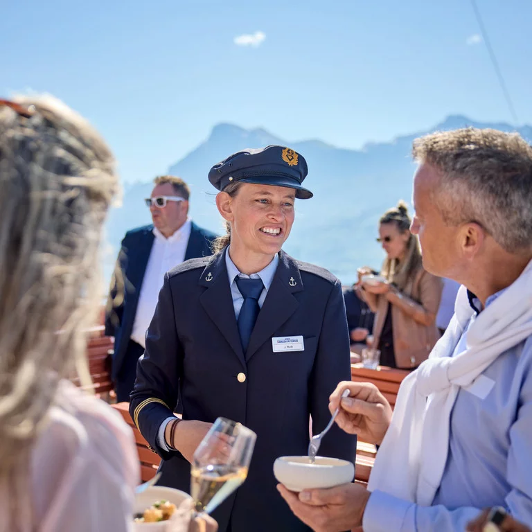 V exkluzivním prostředí s maximálně 65 hosty na palubě vás čeká mimořádný zážitek: cesta plná příběhů o hrdinech a legendách, doplněná srdečnou obsluhou a výjimečnou pohostinností s regionálně inspirovaným pětichodovým menu spolu s vybranými víny, šampaňským a širokou nabídkou nápojů – vše v ceně. K tomu výhledy na úžasná horská panoramata Rigi, Pilatu či Bürgenstocku.