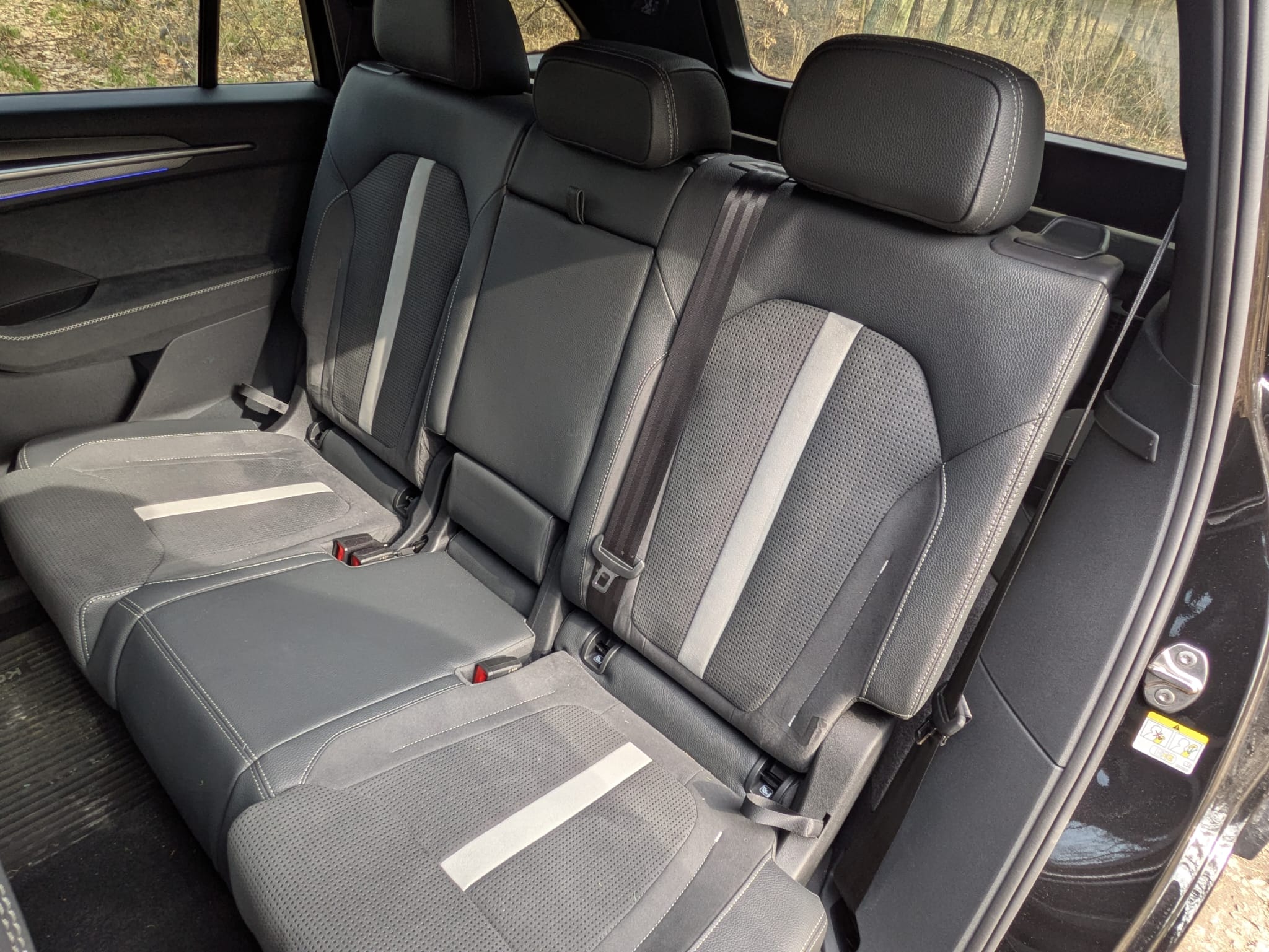Druhá řada sedadel s dostatečným místem i pro nohy kusu chlapa a nastavitelným sklonem se dělí 60:40, ale středový prostor se dá využít (40:20:40) nejen jako stolek pro zabavení dětí, ale hlavně pro pohodlné naložení lyží i snowboardů.