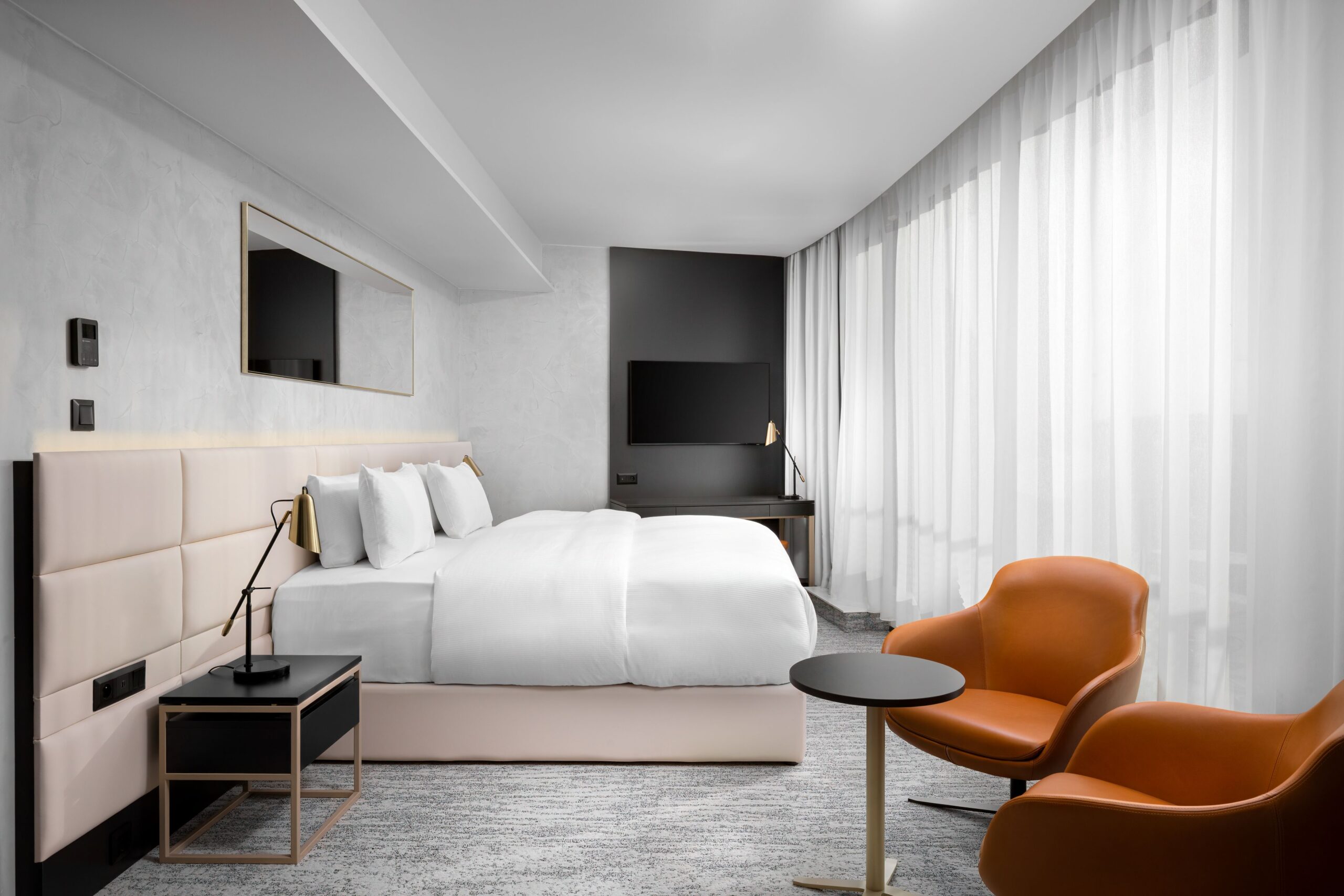 Hotel nabízí celkem 201 pokojů v několika kategoriích, od pokojů Deluxe a Executive až po apartmá typu Business Suite a Suite Petrov. Všechny pokoje jsou navrženy s důrazem na komfort, funkčnost a potřeby hostů přijíždějících za pracovním programem. Standardem je klimatizace, smart TV, vysokorychlostní Wi-Fi připojení, pracovní stůl, trezor a koupelna se sprchou nebo vanou.