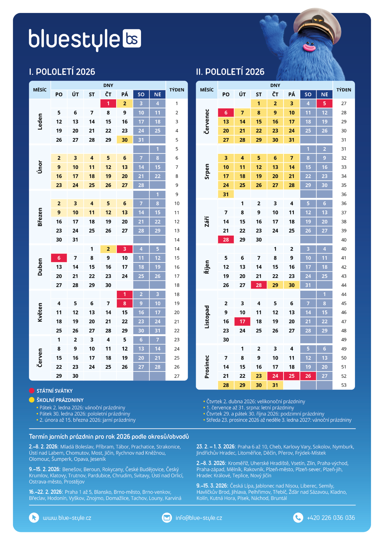 „V našich prodejích termíny prázdnin a státních svátků výrazně vystupují. Lidé vědí, že je zájem o dovolené v těchto obdobích vyšší, a proto si je rezervují s velkým předstihem, aby měli zaručenou dovolenou právě v tento termín ve vybrané destinaci a hotelu,“ říká Simona Fischerová, tisková mluvčí CK Blue Style. „V příštím ještě můžeme využít třeba pro dovolenou prodloužené víkendy během května, v roce 2027 bude jen devět placených svátků, oba květnové připadnou na sobotu. V roce 2028 už ale budou v pondělí a celkem bude placených svátků deset, a v roce 2029 jich bude opět 11, tedy stejně jako v roce 2026,“ doplňuje Simona Fischerová.
